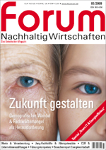 forum Nachhaltig Wirtschaften berichtet vierteljährlich aktuell und kompetent über neue Entwicklungen, Trends und Erfolgsbeispiele zu den Themen Nachhaltigkeit und unternehmerische Verantwortung in Wirtschaft, Politik und Gesellschaft. Mit einer Auflage von 30.000 Exemplaren erreicht forum Nachhaltig Wirtschaften eine breit gefächerte Leserschaft. Unter www.forum-csr.net finden Sie die Inhalte des Magazins, aktuelle News, Literatur- und Surf-Tipps sowie Termine zum Thema Nachhaltigkeit.