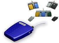 Die mit farbigen Kunststoffgehäusen ergonomisch geformten, flachen Universal-Fußschalter sind auf der Oberfläche mit einem Punktraster gegen Abrutschen und auf der Unterseite z.B. mit Neopren-Aufklebern gegen wegrutschen gesichert.