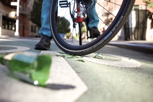 Unplattbar durch Scherben fahren: Der neue Marathon Plus rollt sicher und jetzt auch noch schneller. Foto: Schwalbe