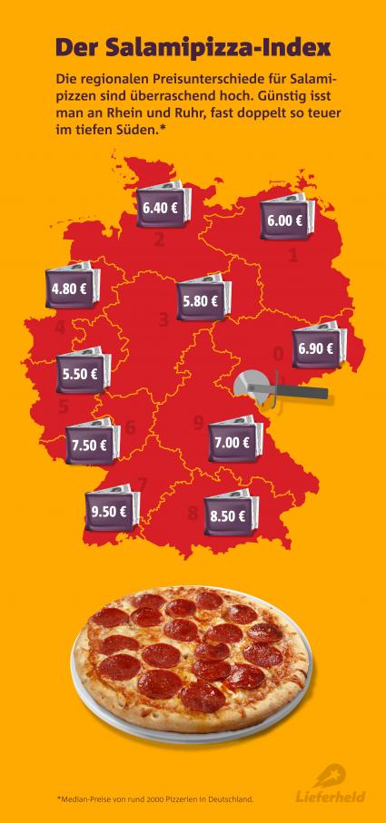 Salamipizza-Preisindex von Lieferheld, der anschaulich zeigt, wie
