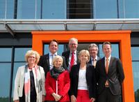 Im Bild v.l.n.r.: Gabriele Preuß (SPD-Kandidatin für das Europäische Parlament), Anne Heck-Guthe (Bürgermeisterin in Waltrop), NRW-Ministerpräsidentin Hannelore Kraft, Björn Kemper (Geschäftsführer KEMPER Gruppe) Michael Schiller stellv. kaufmännischer Leiter KEMPER Gruppe), Cay Süberkrüb (Landrat Kreis Recklinghausen), Gerd Kemper (Geschäftsführer KEMPER Gruppe) vor dem neuen Unternehmenssitz von KEMPER STORATEC in Waltrop.
