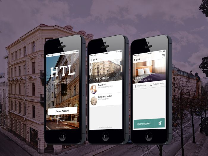Science Fiction? Nein, genau so öffnen die Gäste im brandneuen, 274 Zimmer umfassenden HTL Hotel in Stockholm heute ihre Tür. Die Reise beginnt schon vor dem Check-in. Die Gäste registrieren sich vorab und bezahlen ihren Aufenthalt. Am Ankunftstag werden der Schlüssel und die Zimmernummer per Push-Verfahren auf die App "Mobiler Schlüssel" im Smartphone des Gastes gesandt. Und das war's auch schon! Am Ankunftstag kann sich der Gast direkt auf sein Hotelzimmer begeben.