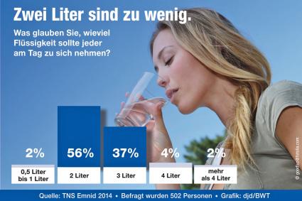 Zwei Liter pro Tag sind zu wenig / Mehrheit der Bundesbürger schätzt Flüssigkeitsbedarf zu niedrig ein (FOTO)