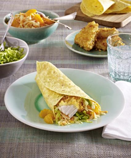 Ob Filegro Crunch´n´Fisch im Wrap mit Weißkraut-Karottensalat,
