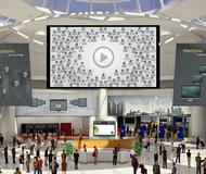 Während die virtuelle Messe vor allem den Eventcharakter verkörpert, wird das virtuelle Informationszentrum vorrangig für Schulungen, Recruiting oder als Mitarbeiter-Treffpunkt verwendet. Die dauerhafte und dynamische 3D-Umgebung bietet ebenfalls die Möglichkeit, mehrere Orte mit verschiedenen Inhalten zu errichten und diese mit rollenbasierten Zugängen auszustatten. So können beispielsweise abteilungsspezifische Orte geschaffen werden, an denen jeweilige Informationen hinterlegt sind, oder es wird ein Schulungsraum gestaltet, in welchem Lernmaterial heruntergeladen werden kann, Schulungsvideos angesehen werden können und abschließend ein Online-Test mit Prüfungsfragen absolviert werden kann. Es besteht ebenfalls die Möglichkeit für die Besucher, miteinander zu chatten, sich auszutauschen und Webcasts im Auditorium anzuschauen.