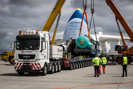 Mit dem größten Frachtflugzeug der Welt, mit dem Binnenschiff und