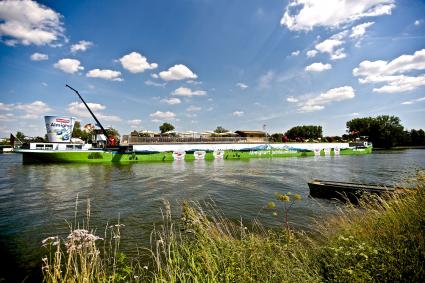 Deutschlandfahrt. Mit einer 100 Meter langen schwimmenden Alm, die