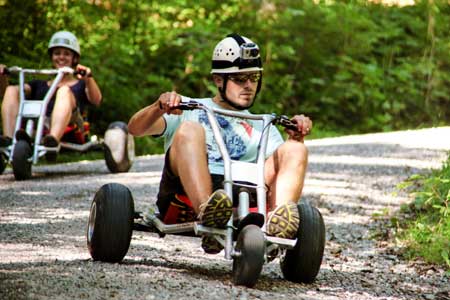 In Marquartstein, südlich des Chiemsees gelegen, gibt es eine neue Attraktion. Angeführt von einem Guide können Gäste dort mit einem "Mountaincart" den Berg hinunterfahren. Der Start erfolgt auf rund 1000 Metern. Das Angebot kostet 61 Euro inklusive einer Bahnfahrt und Leihhelm. Weitere Auffahrten mit der Bahn kosten je 6,50 Euro. Mit dem Mountaincart, der Erfindung eines heimischen Ingenieurs, erreichen Fahrer auf der rund 45-minütigen Abfahrt vom Berg bis zu 40 Stundenkilometer.
