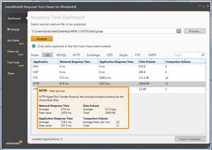 Das kostenlose Tool verbessert die Benutzererfahrung mit Wireshark, einem der meistgenutzten kostenlosen DPI-Tools. Dies wird ermöglicht durch die nahtlose Bereitstellung der automatischen Analyse und Berechnung von Anwendungs- und Netzwerkantwortzeiten sowie des Daten- und Transaktionsvolumens, das sich aus den Paketerfassungsdaten von Wireshark ergibt. Mithilfe dieser Dateneinsichten können IT-Profis anfangen, zu ermitteln, ob Leistungsprobleme ihre Ursache im Netzwerk oder in der Anwendung haben.