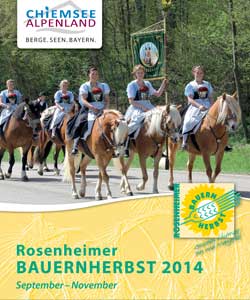(firmenpresse) - (NL/7460834641) Druckfrisch ist die Broschüre zum Bauernherbst-Programm der Region Chiemsee-Alpenland. Sie kann ab sofort kostenlos beim Tourismusverband angefordert werden. Das kompakte, bebilderte Heft gibt auf 40 Seiten einen Überblick über bäuerliche, kulturelle und kulinarische Veranstaltungen in der Zeit von September bis November 2014. Dazu gehören Märkte ebenso wie Brauchtumsveranstaltungen und Konzerte. Erntedank, Kirchweih und Leonhardi sind die prägenden Kirchenfeste in Oberbayern. Die Broschüre erläutert den überlieferten Hintergrund der Veranstaltungen, gibt kleine Übersetzungshilfen und führt die Gäste nicht nur zu den sehenswerten Festen, sondern auch zu Wirten mit herbstlicher, regionaler Küche, zu Hofläden und Hofcafés. Schmankerltipps und eine Liste mit Einkaufsmöglichkeiten für regionale Erzeugnisse runden das Heft ab. Das Chiemsee-Alpenland-Infocenter nimmt unter der Telefonnummer 08051 965550 Bestellungen entgegen.