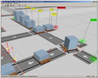 Besonderheit: Während beim Einsatz des 3D-Software-Tools mit allen beteiligten, realen Signalgebern wie Warehouse Management System, Materialflussrechner und Automationssteuerungen direkt kommuniziert wird, sind die Fördertechnikkomponenten und ihre Eigenschaften lediglich in einem dem realen Anlagenlayout nachgebildeten, virtuellen Raum dreidimensional dargestellt.