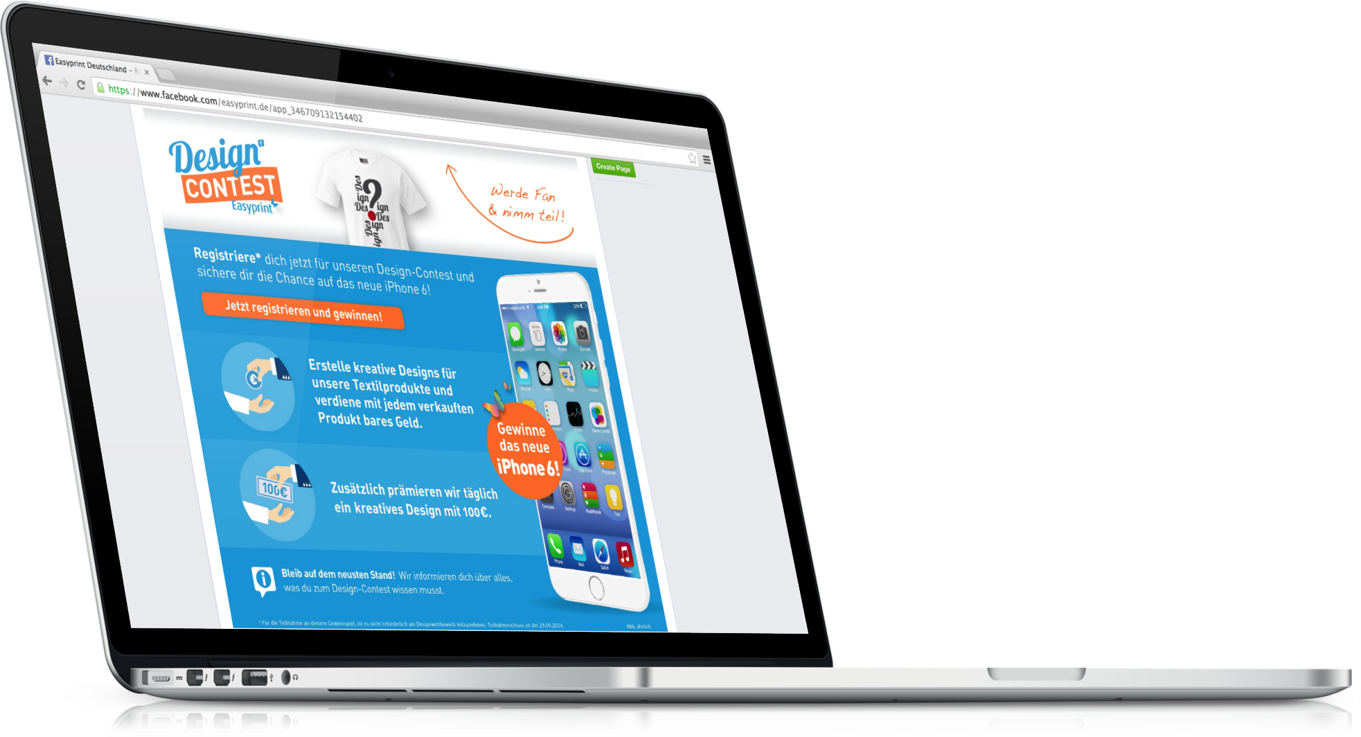 Auf der Facebookseite von Easyprint startet in Kürze ein großer ?Design-Contest?, bei dem Fans die Möglichkeit haben kreativ zu werden, eigene Designs zu verkaufen und zusätzlich jeden Tag 100 Euro gewinnen können. Wer sich jetzt schon auf der Facebookseite für weitere Informationen zum Contest registriert, sichert sich sogleich die Chance auf das neue iPhone 6.