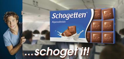 Schogetten-Spot hinein und nimmt sich dort ein Schokoladenstück.