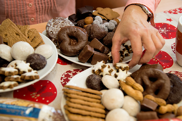 Alle Jahre wieder schlagen sich die vielen Leckereien im Advent auf der Waage nieder: Plätzchen, gebrannte Mandeln, Butterstollen - die Versuchungen locken an jeder Ecke. Der Vorsatz, nicht zuzuschlagen, lässt sich kaum einhalten. Gerade, wer sich tagsüber zurückhält, tappt oft am Abend in die Heißhungerfalle. Dr. Wolfgang Reuter, Gesundheitsexperte bei der DKV Deutsche Krankenversicherung, kennt wirksame Gegenmaßnahmen.