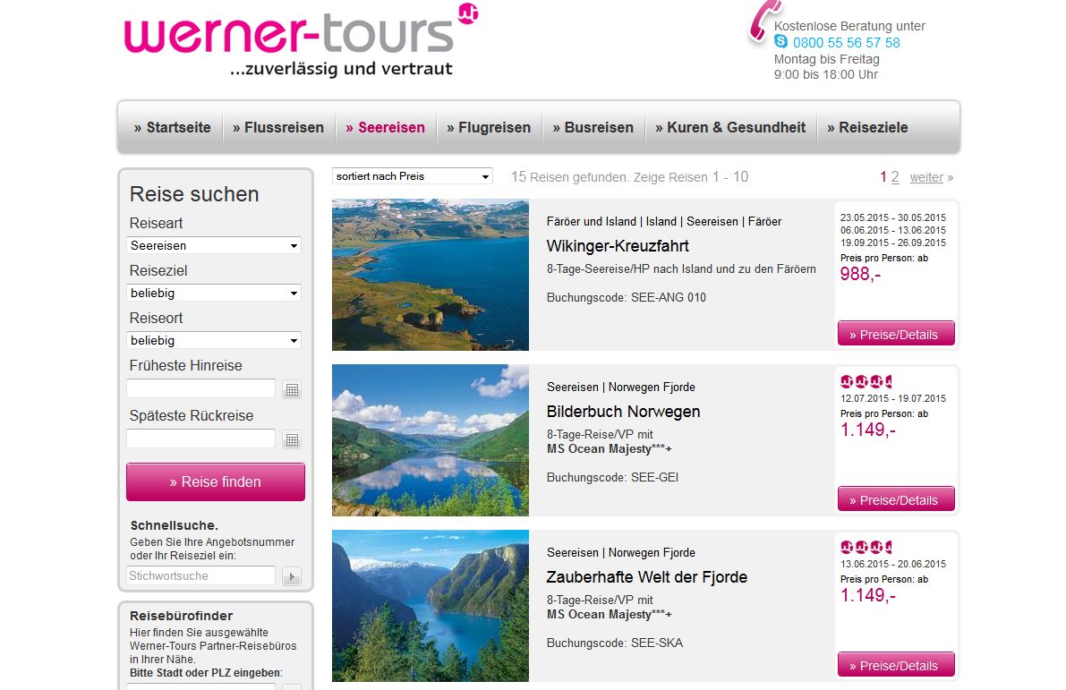 Das wohl größte und einzige Problem bei einer Seereise ist, dass man sich für ein Angebot entscheiden muss. Das Unternehmen Werner-Tours bietet seinen Kunden eine breite Palette an Seereisen an. Eine Entscheidung fällt hier auf keinen Fall leicht. Aber es ist egal, für welche Seereise man sich entscheidet, die Entscheidung ist immer richtig, denn eines ist allen Seereisen gemein ? sie sind spannend, interessant, lustig und absolut faszinierend.