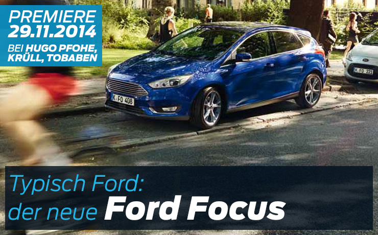 Bei den Unternehmen Hugo Pfohe, Krüll und Tobaben, die in dem Gemeinschaftsprojekt "Fordpartner Hamburg" zusammengeschlossen sind, wird die Modellneuheit ins Zentrum der Aktivitäten gerückt. Zum Ende eines bereits erfolgreichen Ford-Jahres steht der neue Ford Focus als Vier- und Fünf-Türer sowie in der Kombi-Variante Turnier zur Verfügung. Ausgiebige Information und Beratung geben die Fordpartner, die unter www.fordpartner-hamburg.de (http://www.fordpartner-hamburg.de) zu erreichen sind.