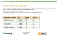 Die Mitglieder WTI-Frankfurt und das Fraunhofer IAO des Vereins Forum ElektroMobi-lität haben gemeinsam mit TEMIS die Wissensplattform TecScout entwickelt, mit deren Hilfe u.a. Informationen rund um das Zielfeld Elektromobilität recherchiert, analysiert und visualisiert werden können. Die Auswertungen und Analysen helfen bei der Beantwortung z.B. folgender exemplarischer Fragestellungen: