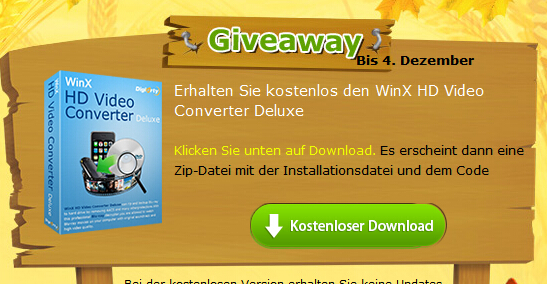 Das Feiertags-Giveaway ist für jeden erhältlich, das heißt jeder bekommt den Videokonverter unverbindlich und kostenfrei auf: http://www.winxdvd.com/giveaway/index-de.htm