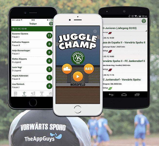 (firmenpresse) - Ihrer Liebe für das runde Leder verleihen TheAppGuys beim Kölner Fußballverein Vorwärts SpoHo 98 einen handfesten Ausdruck. Nach dem Material-Sponsoring für die Herrenmannschaft entwickelten die Mobile-Spezialisten mit Sitz in Köln-Bickendorf nun ehrenamtlich eine Club-App. Mit ihrem digitalen Know-How sorgen die App-Entwickler so für einen modernen Auftritt von Vorwärts SpoHo 98 und sprechen eine wichtige Zielgruppe des Vereins an.