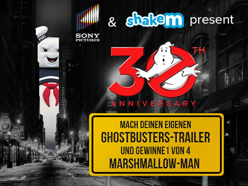 In Zusammenarbeit mit dem Social-Clip-Creator shakem der Petter.Letter GmbH und der Sony Pictures Home Entertainment GmbH, wurde ein tolles Gewinnspiel auf die Beine gestellt. Alle GHOSTBUSTERS Fans haben bis zum 10.01.2015 Zeit, sich als Regisseur zu versuchen und einen eigenen GHOSTBUSTERS Trailer auf shakem zu erstellen. Alle erstellten Clips werden auf der shakem Community zu sehen sein und am Ende werden die besten vier Videos ausgezeichnet. Unter allen Teilnehmern werden vier MARSHMALLOW-MAN verlost.