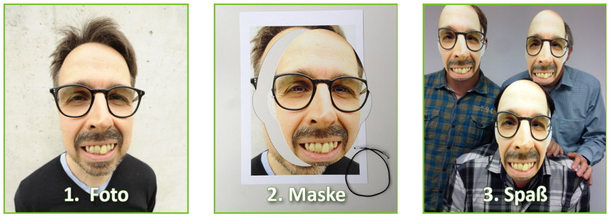 Fotomasken von Printello sind eine witzige Idee auch für Kindergeburtstage, Familienfeiern, Polterabende, Junggesellenabschiede, Abifeiern, Vereinsfeiern, Messen und viele Anlässe mehr.