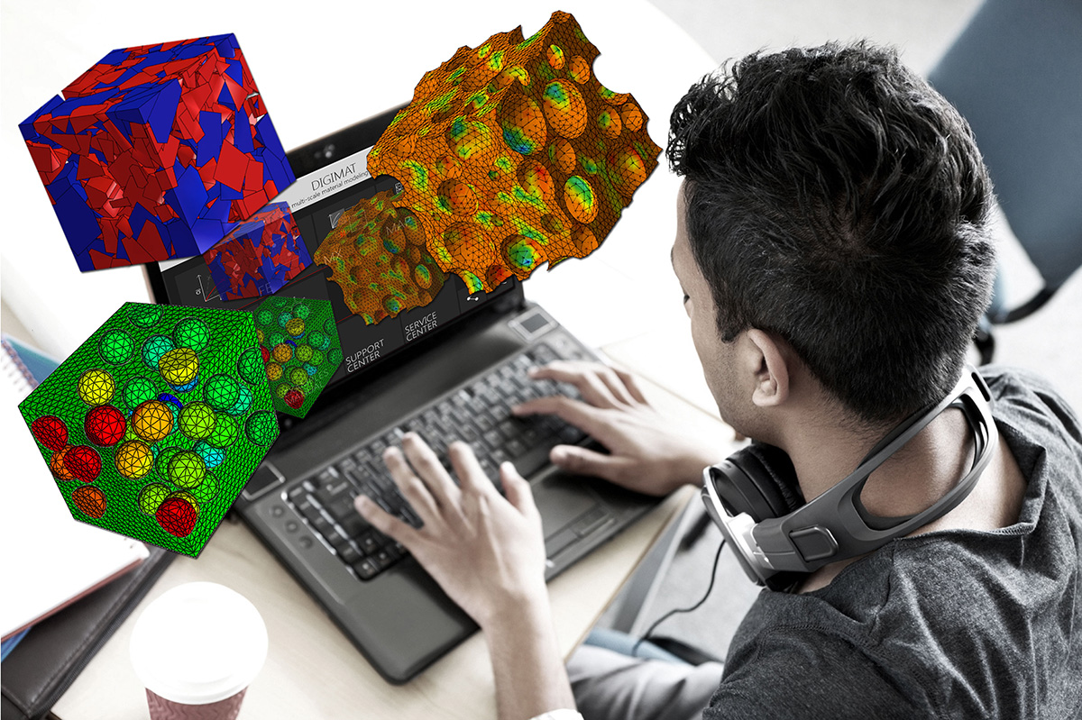 In der Produktgestaltung ist es enorm wichtig, die Materialeigenschaften zu berücksichtigen. Nur mit korrekten Materialdaten können realistische Simulationsergebnisse erzielt werden. Die Software Digimat unterstützt Anwender dabei. Digimat stellt Materialmodelle zur Verfügung, die das Verhalten von Werkstoffen auf Grundlage ihrer Mikrostruktur vorhersagen. Die Software eignet sich besonders gut für die Analyse faserverstärkter Verbundwerkstoffe, sogenannter Composites. Anwender können Aussagen über das Materialverhalten, die Beschreibung der Mikrostruktur und die Belastung von Composites treffen.