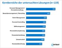 Die Untersuchung der 120 Lösungen in der HR-Software-Studie 2015 zeigt, dass die HR-Anbieter ihre Systeme zunehmend funktionaler und umfangreicher gestalten. Durch die Erweiterung um Module für das Bewerbermanagement oder das Skill- und Kompetenzmanagement sowie zahlreicher Auswertungsmöglichkeiten ist das Angebot der einzelnen Personalmanagementsysteme in den letzten Jahren gewachsen. Diese Entwicklung ist nicht abgeschlossen. Viele Anbieter nutzen die gute Auftragslage, um weitere Module und Funktionalitäten in ihr Softwareportfolio zu integrieren. Die Softwarehersteller tun gut daran, ihre Angebotspalette zu erweitern, denn ?die Zeit der Insellösungen ist auch im HR-Bereich vorbei?, so Michael Gottwald, Geschäftsführer der Hamburger Unternehmensberatung SoftSelect. ?Unternehmen setzen in Auswahlprojekten derzeit stark auf durchgängige und nach Möglichkeit tief integrierte Anwendungen auf einer Oberfläche, um so die Personalarbeit effizienter zu gestalten?, so Gottwald weiter.
