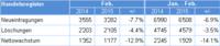 In den ersten beiden Monaten gingen die Löschungen ebenfalls leicht zurück (- 3.5 %). Unter dem Strich resultiert ein Nettowachstum von 1 929 Firmen was einem Minus von 14.1 % gegenüber dem Vorjahr entspricht.