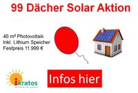 (PresseBox) - ikratos einer der führenden Firmen im Landkreis Forchheim ist Initiator dieser 99-Dächer-Aktion. Seien Sie mit dabei - setzen Sie auf erneuerbare Energien im eigenen Haus. Für nur 11.999 Euro netto bekommen Sie Ihre PV-Anlage-mit Lithium-Speicher aufs Dach - versprochen. Und ... es ist einfacher als Sie denken - allerdings - die 99-Dächer-Aktion ist zeitlich limitiert.