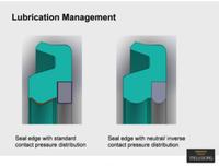 Lubrication Management regelt die Schmierfilmbildung und passt den Schmierfilm im Dichtsystem an die Belastung der Einzelelemente an. Und das genau dort, wo der Einfluss auf die tribologischen Verhältnisse am größten ist - im Dichtspalt, dem Kontaktbereich zwischen Dichtung und Gegenlauffläche. Lubrication Management schmiert die Primärdichtung besser und bietet für die Sekundärdichtung einen optimierten Schmierfilm an. So sinkt die Belastung des gesamten Dichtsystems sogar wenn die Betriebsparameter in der Anwendung steigen.