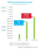 - Die Gesamtzahl der Datensätze, die im Jahr 2014 in falsche Hände geriet (eine Milliarde Datensätze), war rund 20 Prozent höher als im Jahr 2013 (800 Millionen Datensätze).