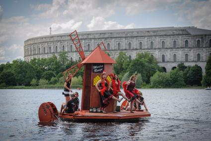 Wettkampfklasse, mit originellen und witzig gestalteten Booten zu