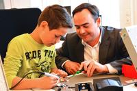 Thomas Heimann, Leiter der Ausbildung bei WAGO: "Auf spielerische Weise lernen die Schüler unsere Ausbildungsberufe am Zukunftstag kennen und können so heraus finden, welche Tätigkeiten ihnen liegen und Spaß machen. Die Workshops werden direkt in unserer Ausbildungswerkstatt und im Studentenzentrum durchgeführt - so wird ein praktischer Einblick in die Ausbildungsberufe vermittelt."