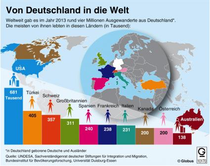 ""Grafik des Monats" - Thema im Mai: In welche Länder zieht es aus Deutschland ausgewanderte Menschen? (FOTO)"