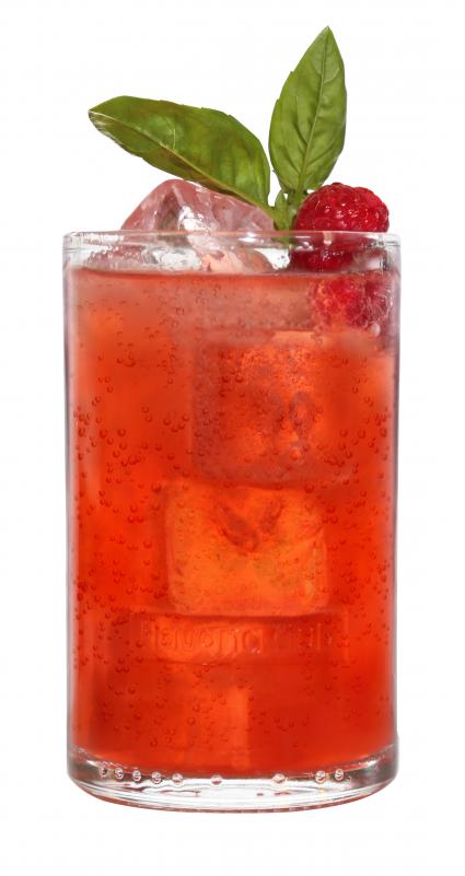 auffüllen. Mit einem Blatt Basilikum und einer Himbeere garnieren.