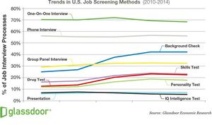 Während es in den letzten Jahren bei den Methoden für Bewerbungsgespräche kaum zu Veränderungen kam, berichten Bewerber von einer Zunahme bei anderen Arten von Kontroll- und Auswahlverfahren. So stiegen in den USA die Background-Checks bei Stellenbewerbern in den letzten Jahren von 25 Prozent (2010) auf 42 Prozent im Jahr 2014. Andere Verfahren zur Überprüfung der Eignung von Bewerbern, die inzwischen an Bedeutung gewonnen haben, umfassen Qualifikationstests (von 16 Prozent im Jahr 2010 auf 23 Prozent im Jahr 2014), Drogentests (von 13 auf 23 Prozent im selben Zeitraum) und Persönlichkeitstests (von 12 auf 18 Prozent).