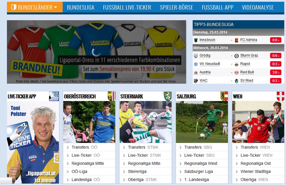 Neben Informationen rund um den Sport und dessen Vereine, bietet ligaportal.at einen Live-Ticker, einen Online-Shop sowie die erste Handy-App im österreichischen Fußball.