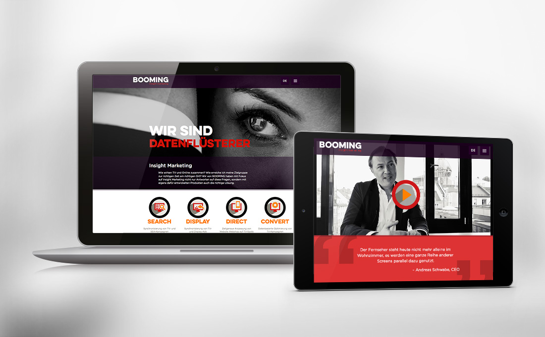 Neukunde für CODE64. Die Münchner verantworten den Relaunch der Markenwebsite zur Neupositionierung von BOOMING als Insight-Marketing-Experten und starkes Mediaunternehmen.