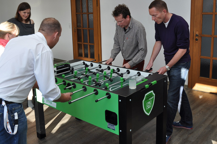 Die Mitspieler und Paarungen wurden ausgelost und nach zahlreichen spannenden Spielen ein Siegerpärchen gekürt. Bei leckeren selbstgemachten Schnittchen und kalten Getränken ließ es sich beim Netzwerken und Anfeuern prima aushalten und unter Anleitung von Frank Dörrie wurde sogar ein kleines Turnier gespielt. Die Teilnehmer sorgten durch ihr Strahlen und ihre Aufgeschlossenheit für ein gelungenes Event, aber auch das Netzwerken kam nicht zu kurz - denn bei aller Euphorie konnten sich dich Spieler zusätzlich von der herausragenden Qualität des Weines aus dem Weinhaus Georg Feiter persönlich überzeugen. "Schon über 20 Personen/Firmen aus der Hannover Region haben sich als "Krökel-Fans" geoutet und unserer Interessengruppe angeschlossen, somit manifestiert sich unsere Stadt mehr und mehr als "Kickerhochburg für Firmen" in Deutschland" resümierte Apontas-CEO Andreas Tafel.