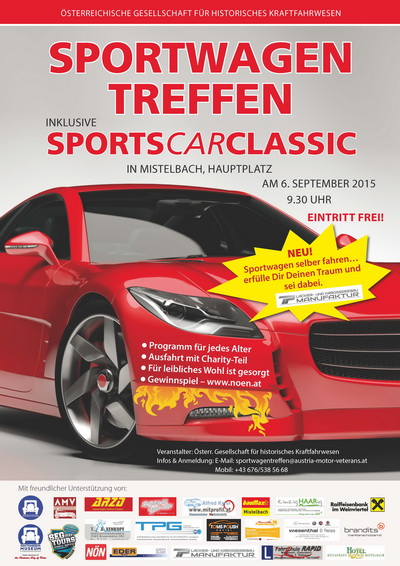 Nenngeld ist keines zu entrichten. Anmeldung unter: sportwagentreffen@austria-motor-veterans.at oder auf http://www.austria-motor-veterans.at/Ausschreibung/20150906.pdf.