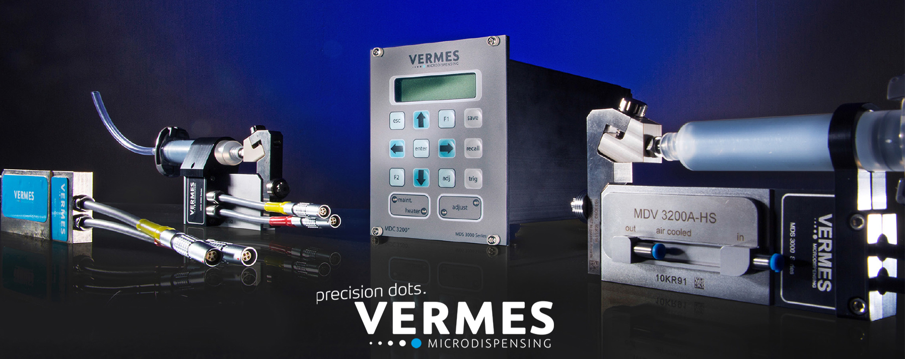 VERMES Microdispensing Systeme (MDS) bestehen aus einem Microdispensing Controller (MDC) sowie einem Microdispensing Ventil (MDV). Um eine maximale Bandbreite an Dosiermedien abzudecken, wurden vier verschiedene Ventiltypen entwickelt: