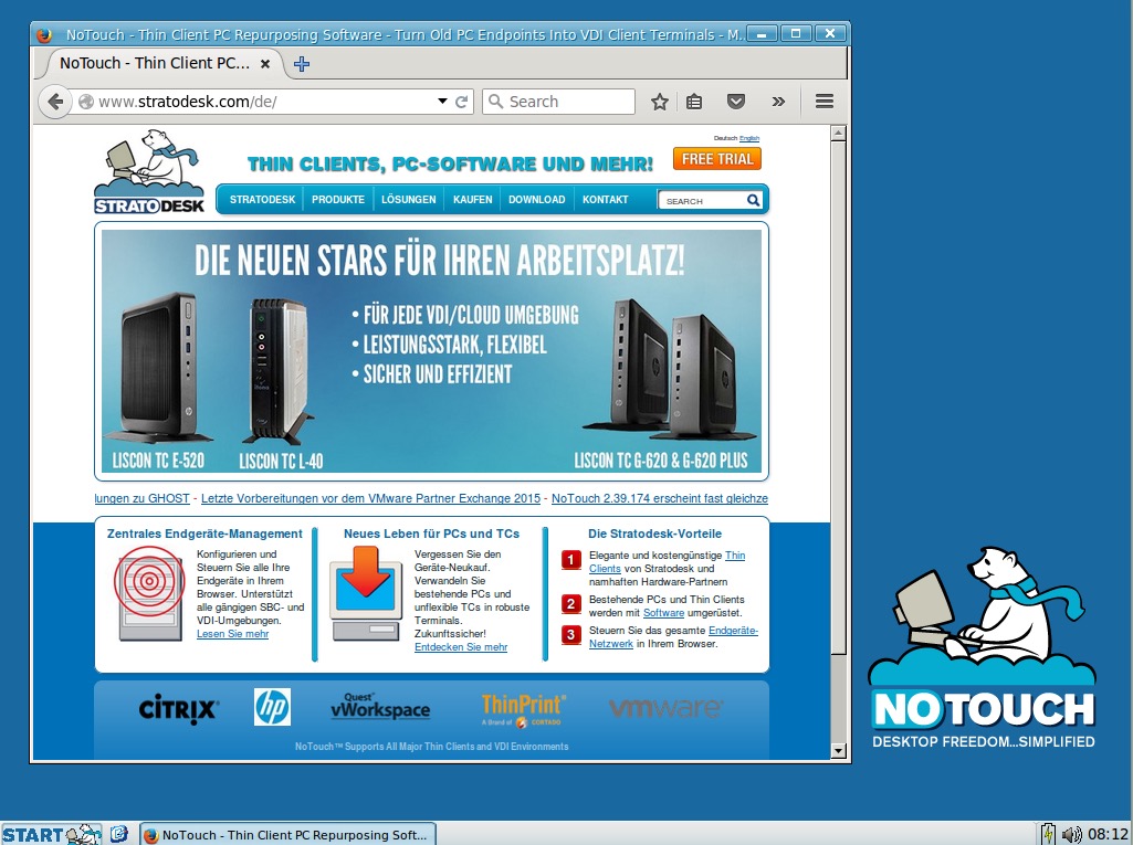 NoTouch/LISCON OS 2.40 steht ab sofort im Downloadcenter zur Verfügung (www.stratodesk.com). Das Update des Client-Betriebssystems ist für registrierte Kunden kostenlos. Das Update für NoTouch Center auf Version 4.2.0 setzt einen bestehenden Wartungsvertrag voraus.