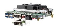 Neben dem DisplayPort bietet es eine 24-Bit Dual-Channel LVDS-Schnittstelle und optional einen HDMI/VGA-Anschluss. Außerdem stehen folgende weitere I/Os zur Verfügung: 4x USB 3.0, 4x USB 2.0, 2 x Gigabit Lan, 2 x Serial, HD-Audio sowie einen miniPCIe Steckplatz.