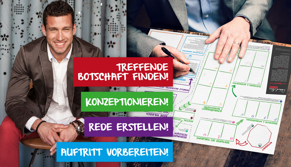 Ein wirkungsvolles Tool, das jedem dabei helfen kann, sich eine zielführende Rede oder Präsentation zu erstellen, hat Patrick Nini mit dem Speech Pad entwickelt. Von der Idee im Kopf bis zum Tag X sind alle Punkte und Themenbereiche abgedeckt, die man braucht, um seinen Auftritt professionell vorzubereiten und seine Botschaft wirkungsvoll zu präsentieren.