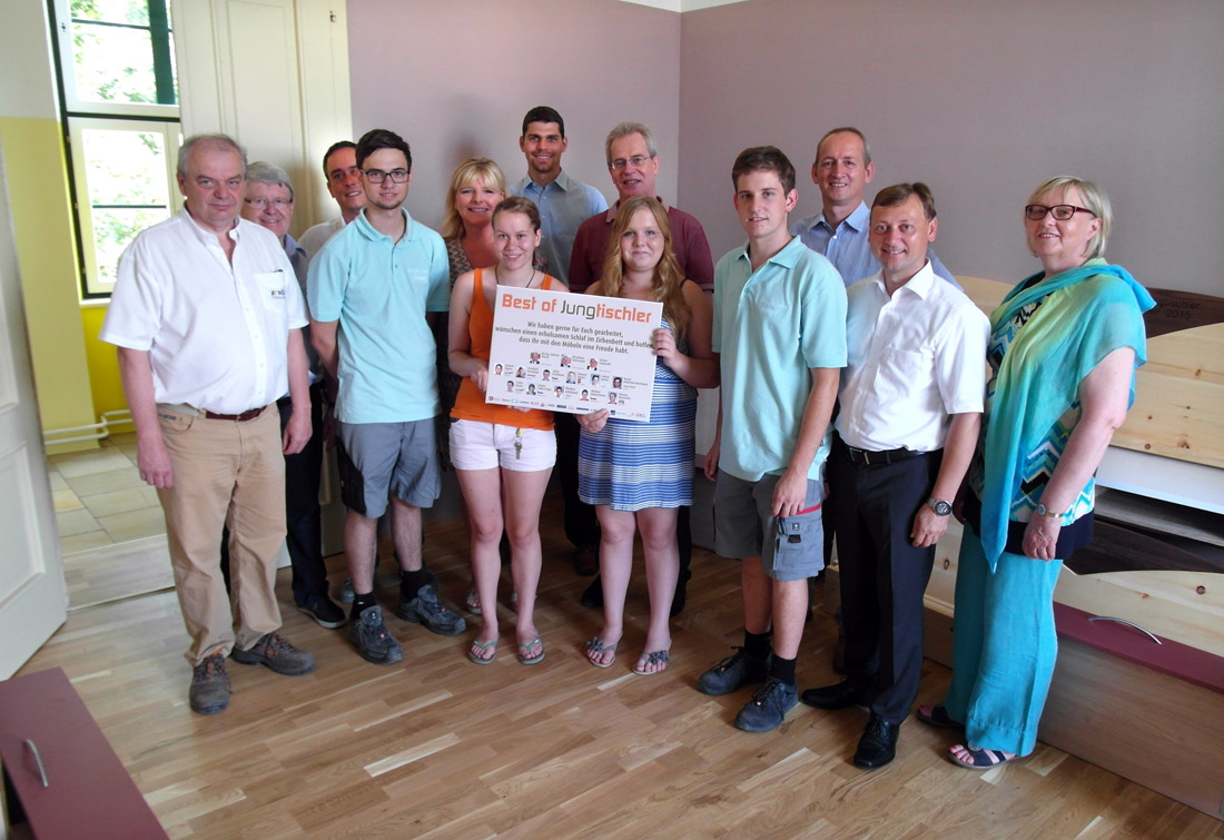Über die Ergebnisse des Wettbewerbes konnten sich nicht nur die Teilnehmer und die zahlreichen Besucher freuen, sondern vor allem auch die Jugend-Wohngruppe JuVis in Judenau. Alle gefertigten Möbel wurden den jungen Mädchen zur Verfügung gestellt und von den hilfsbereiten Jungtischlern persönlich übergeben.