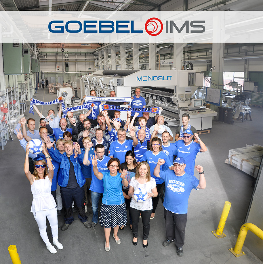 GOEBEL IMS ist weltweit führender Hersteller von Rollenschneid- und Wickelmaschinen und nun auch offizieller Unterstützer des SV Darmstadt 98 - zur großen Freude der 95 Beschäftigten des Darmstädter Standorts. In wöchentlichen Verlosungen haben die Mitarbeiter ab sofort die Möglichkeit, jeweils zwei Stadionkarten für die Bundesliga-Spiele ihres Lieblingsvereins zu gewinnen und vor Ort mit zu fiebern. Das vorherrschende Gesprächsthema auf den Fluren von GOEBEL IMS nach den Spieltagen sind dann natürlich auch die Lilien.