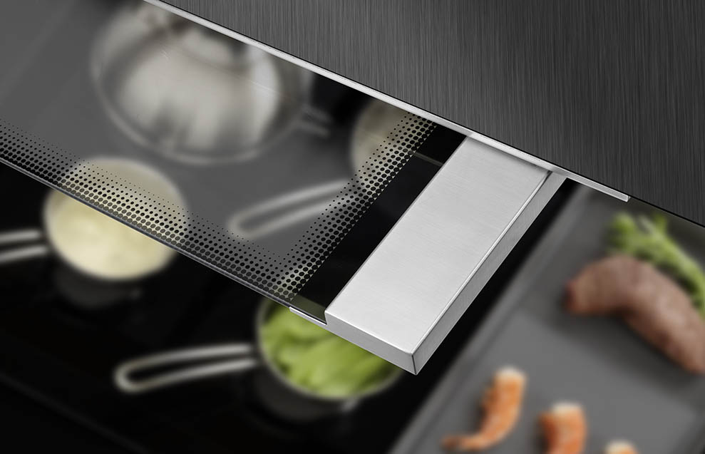 Neu im Programm ist last not least ein Schublüfter, bei dem der Auszug aus einer Glasplatte besteht. Diese Innovation kann sich wahrhaft sehen lassen. Hat man doch Töpfe und Pfannen weiter bequem im Auge - und behält so stets den "Durchblick".