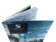 "Wir legen den Umschlag doppelt und verkleben ihn flächig", erklärt Rehms-Geschäftsführer Daniel Baier, "Damit erhalten wir die doppelte Stärke und Stabilität - ähnlich der eines Hardcovers." Ausgenommen von der Dopplung wird der Bund. "So bleibt der Katalog flexibel, das Material erleidet keine Brüche."