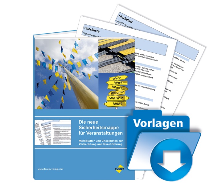 Weitere Informationen unter: Sicherheitsmappe für Veranstaltungen (https://www.forum-verlag.com/alle-produkte/kommunales/verkehr-ordnung-sicherheit/5917/sicherheitsmappe-fuer-veranstaltungen?wa=1236-5)