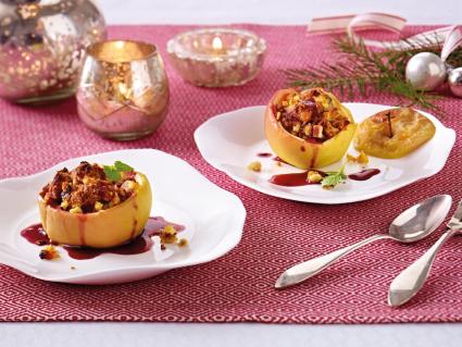Gefüllter Bratapfel mit Bavaria blu und Glühweinsauce